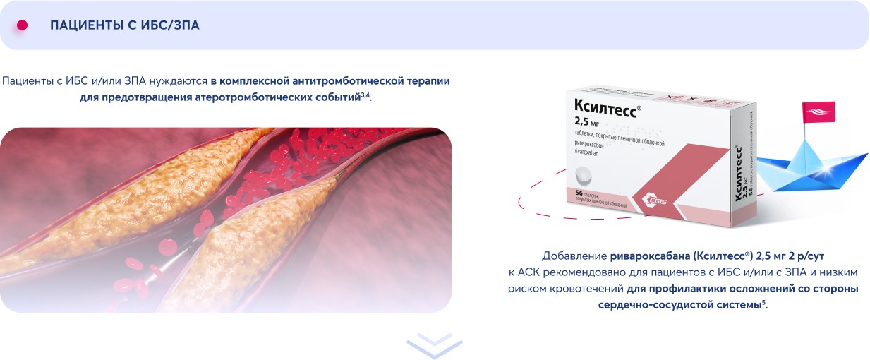ОКС — острый коронарный синдром; ИБС — ишемическая болезнь сердца; ЗПА — заболевание периферических ; ИМ — инфаркт ; АСК — ацетилсалициловая кислота, СС — сердечно-сосудистый.